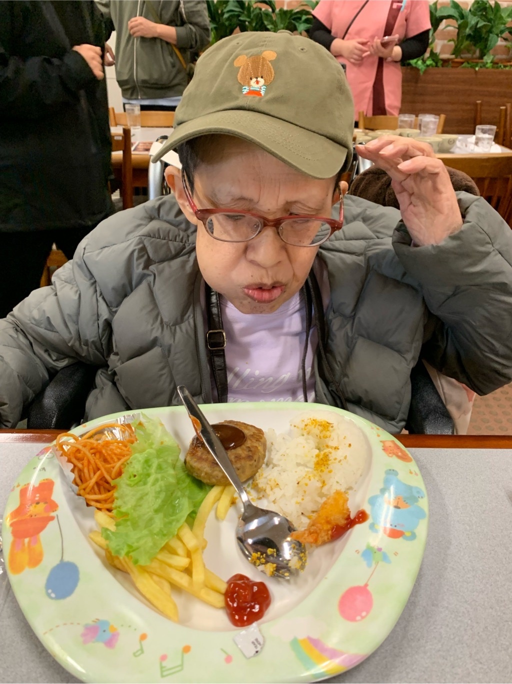 道中は紅葉を見ながらのドライブ。現地ではジンギスカン丼や蒜山焼きそばなど美味しい食事に舌鼓🍽️ 普段少食な方もいっぱい食べられており、職員もびっくりでした!