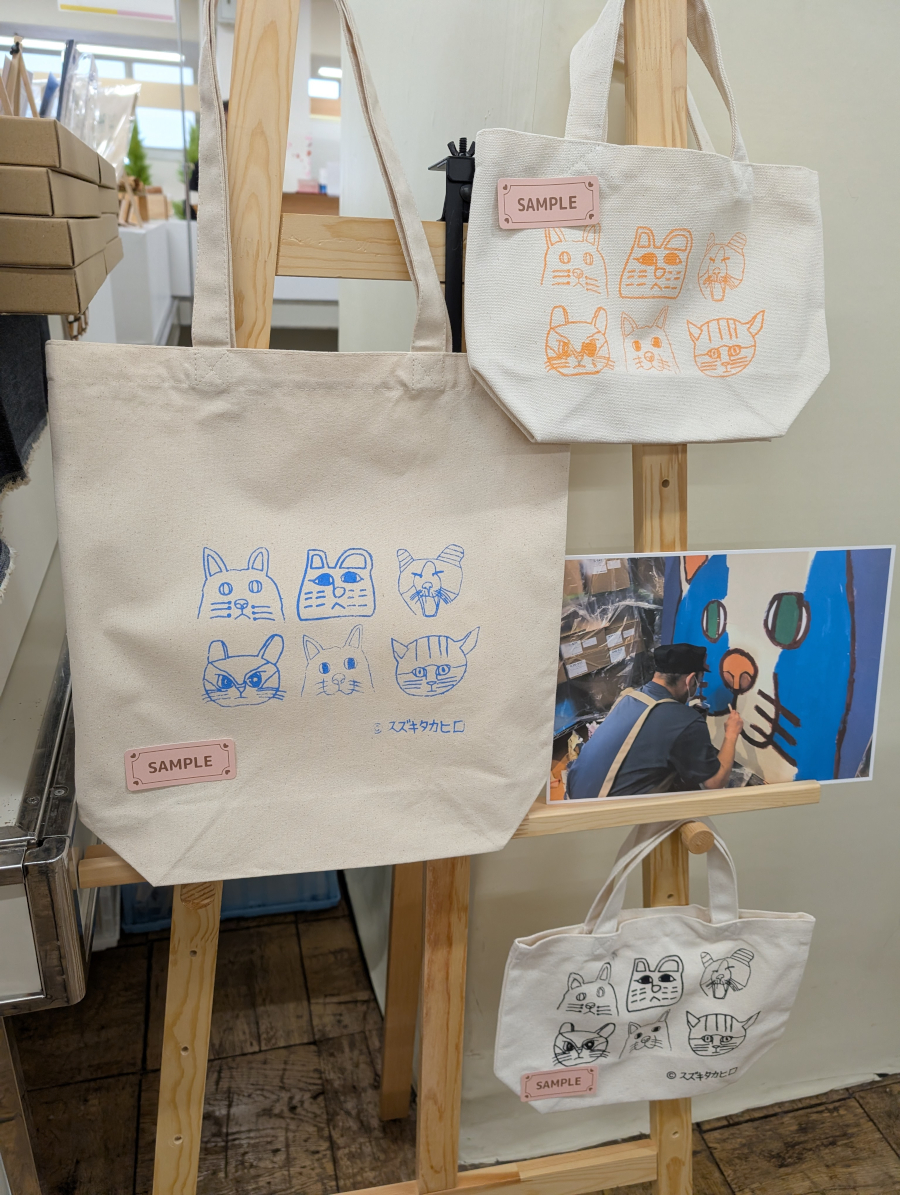 会場の奥側では、山本仁商店とのコラボ手ぬぐいに使われている絵の原画である大きなマネキネコの絵が展示されていました🐈️ 遠くからでもはっきりと見え、インパクト大!でしたね。