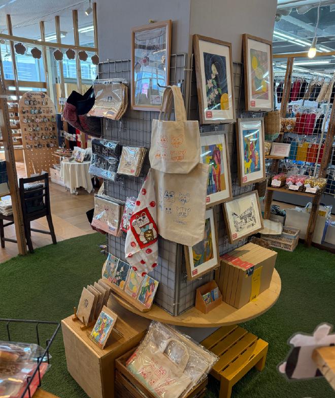 そうじゃ晴々からは、ミニ絵画・ポストカード・手ぬぐい・シルクスクリーンプリントしたトートバッグ類を出品しています😀
