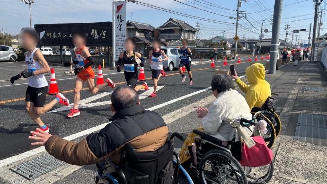晴々の建物のすぐ隣の道がコースになっていたので、グループホームから何名か応援に出ていかれました☺ 近くが給水所になっていてフルーツの提供があったみたいですね🍓🍑