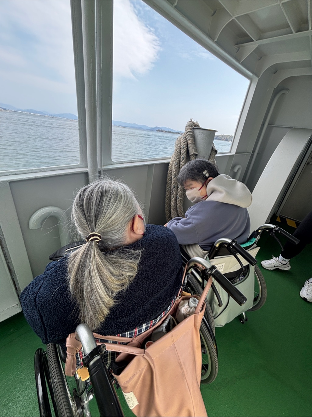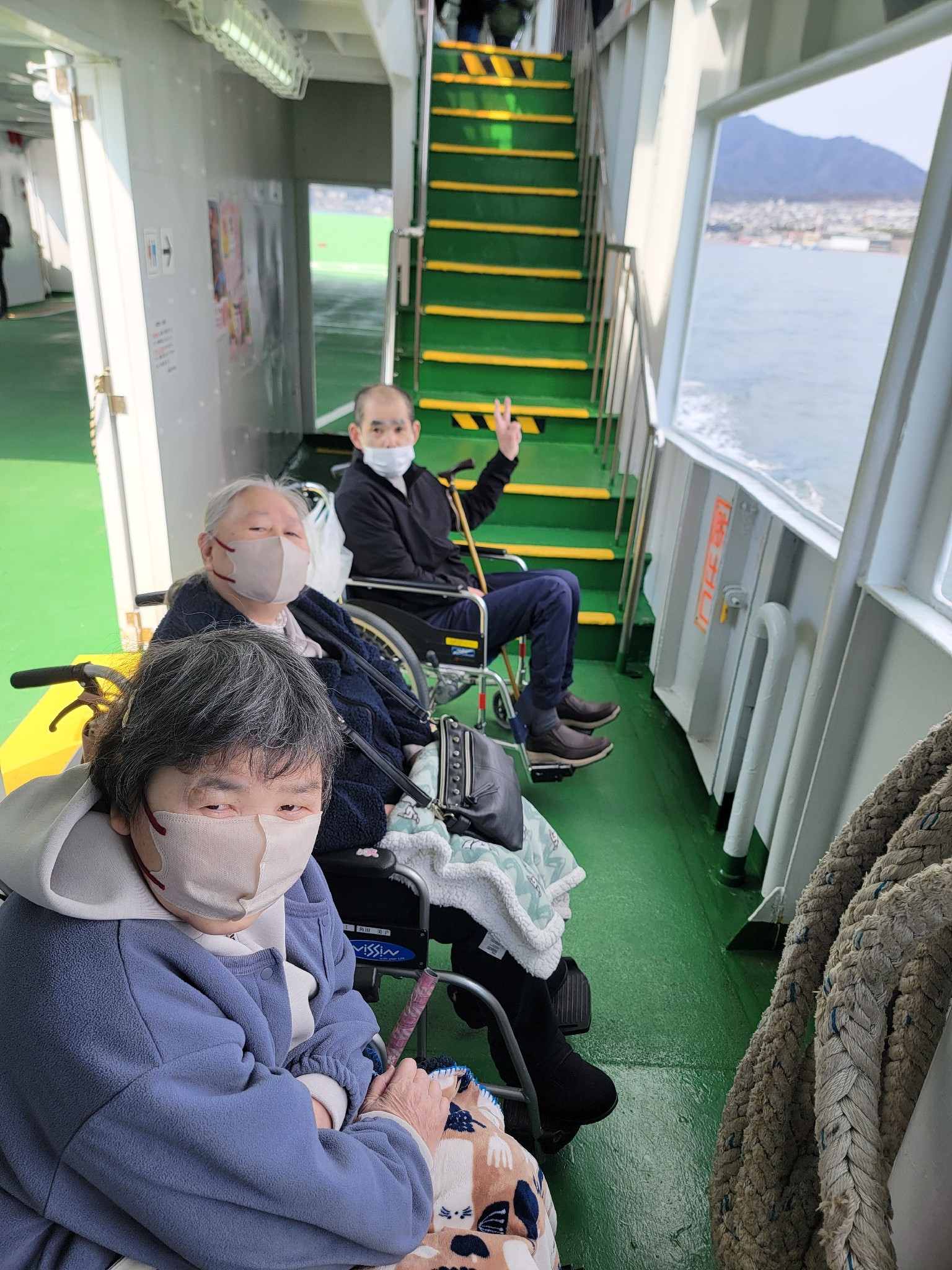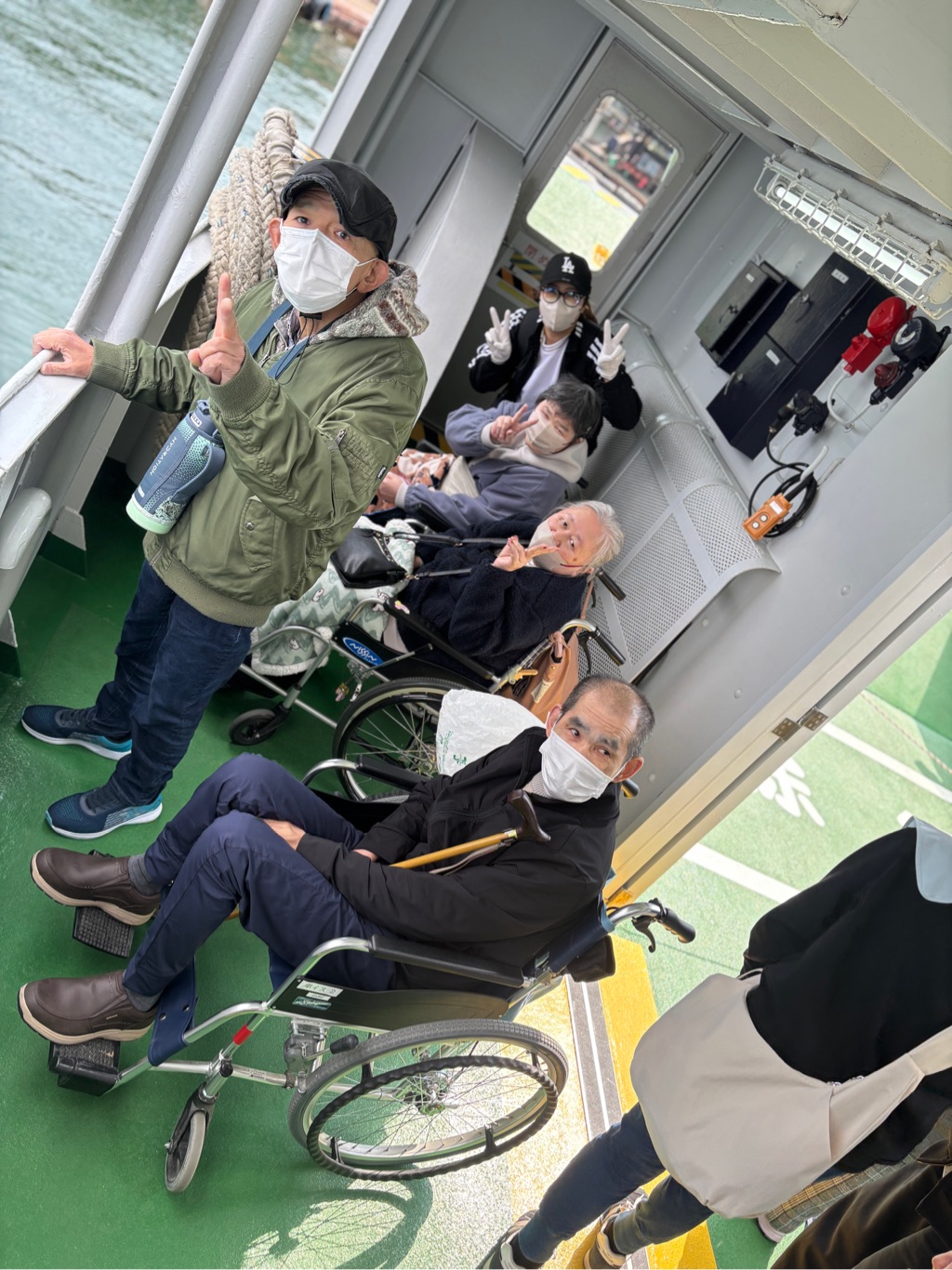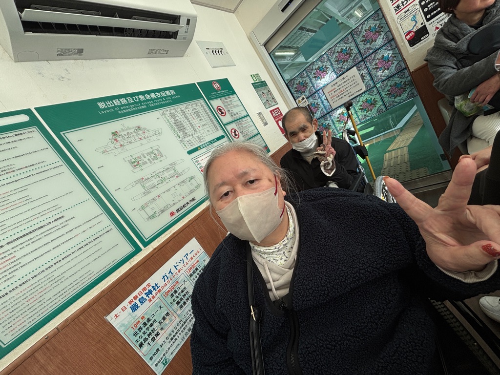 帰りもフェリーに乗り 海を眺めながら皆で写真を撮り合い 宮島SAでお好み焼きやカキを夕食に食べ、お土産を買い帰りました🍁