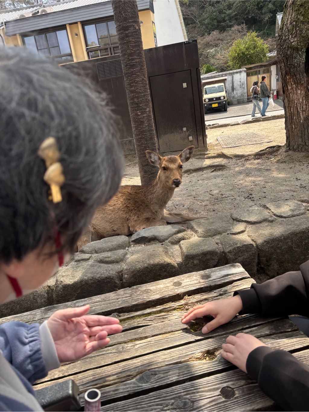 フェリーに乗って宮島へ⛩️ 降りるとさっそく鹿🦌が出迎えてくれました